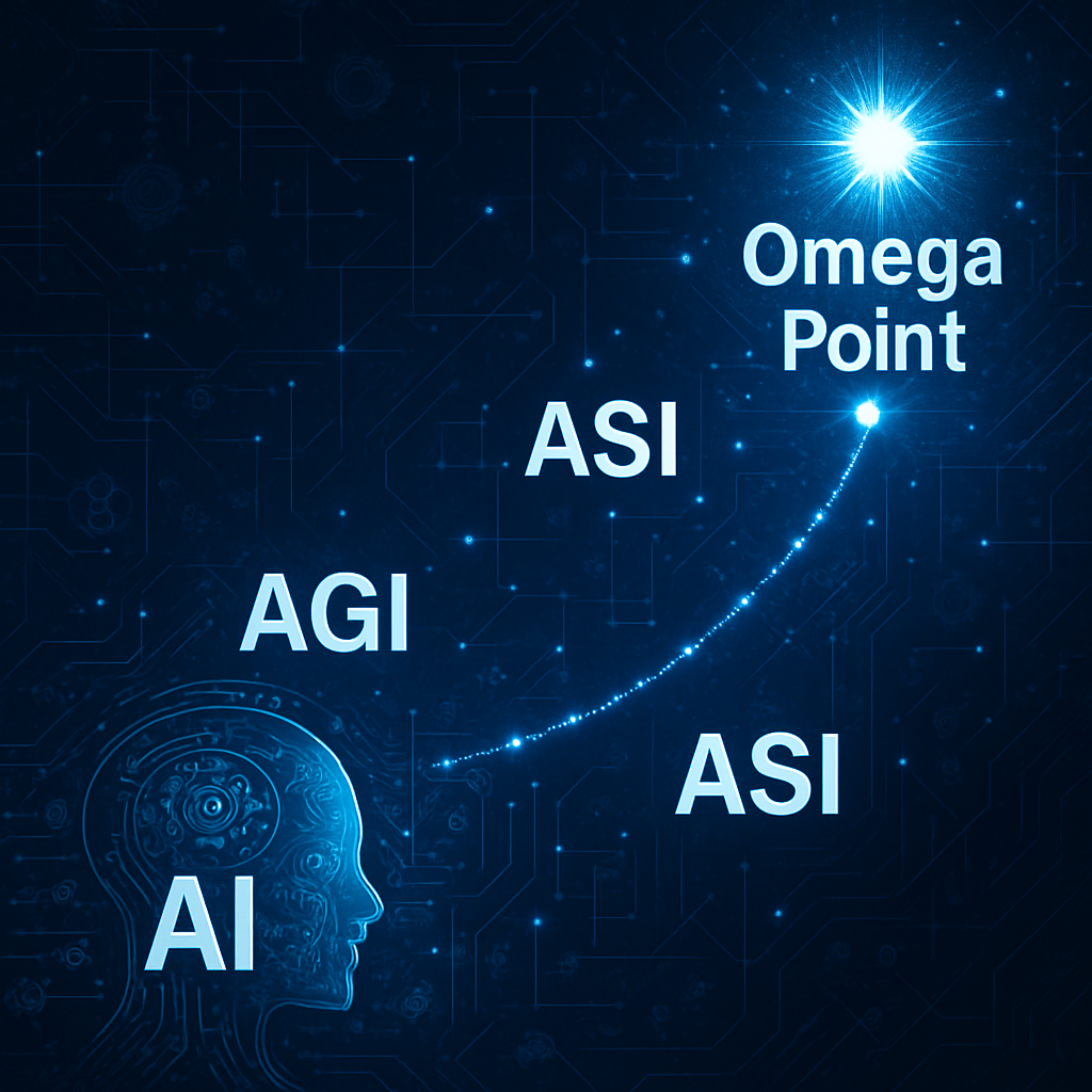 특이점 이후에도 AI가 계속 진화한다면, 우주적 초지능 또는 **오메가 포인트(Omega Point)**에 도달할 수 있다는 관측도 있습니다. 이는 신과 같은 존재, 혹은 전체 현실을 시뮬레이션할 수 있는 지능을 상상하게 합니다.